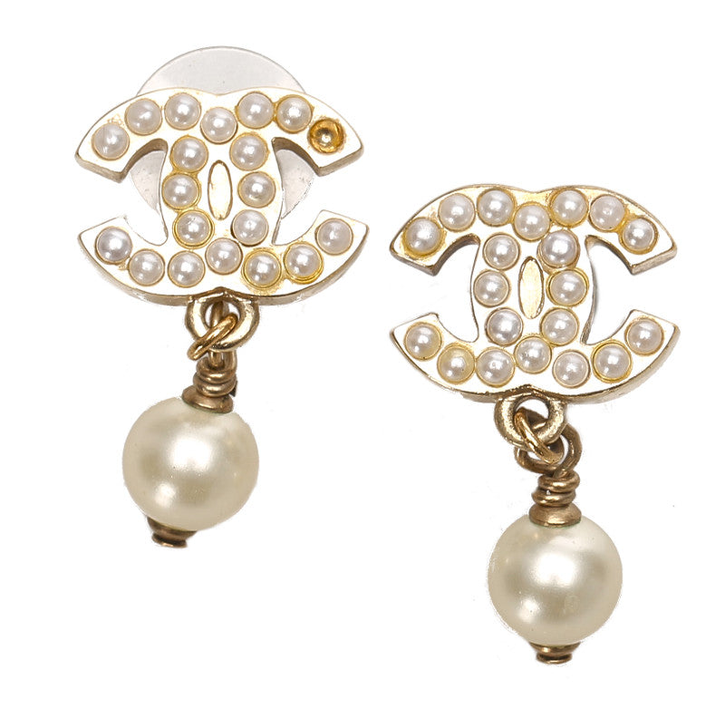 シャネル ココマーク フェイクパール ゴールド ホワイト メッキ ピアス レディース CHANEL 中古