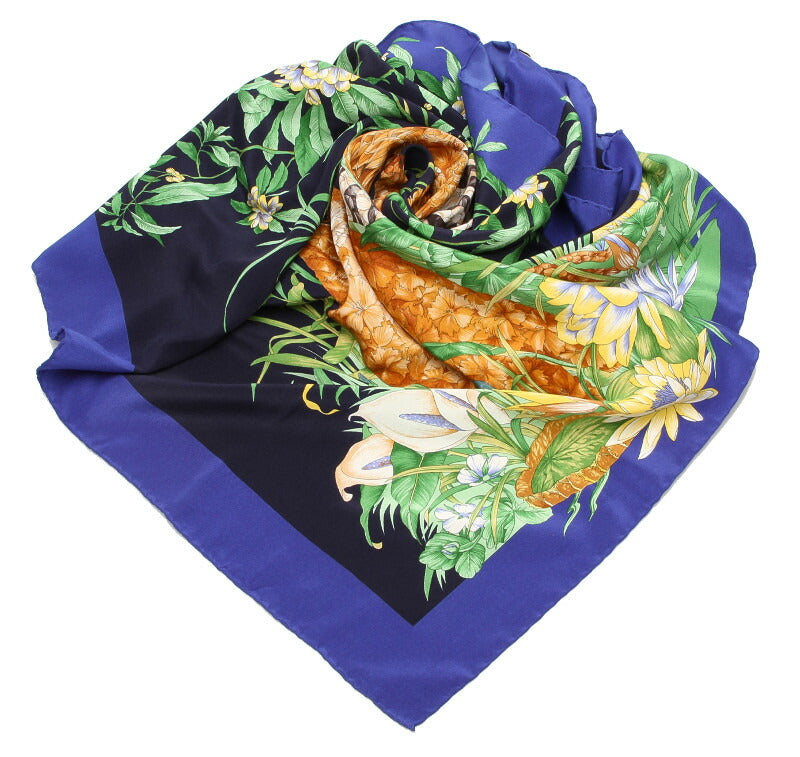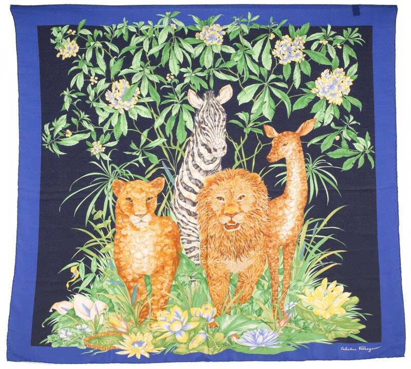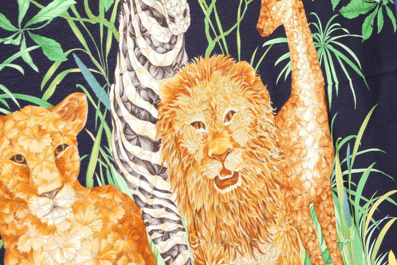 エルメス ライオン ブルー ネイビー シルク スカーフ レディース HERMES 中古