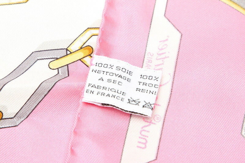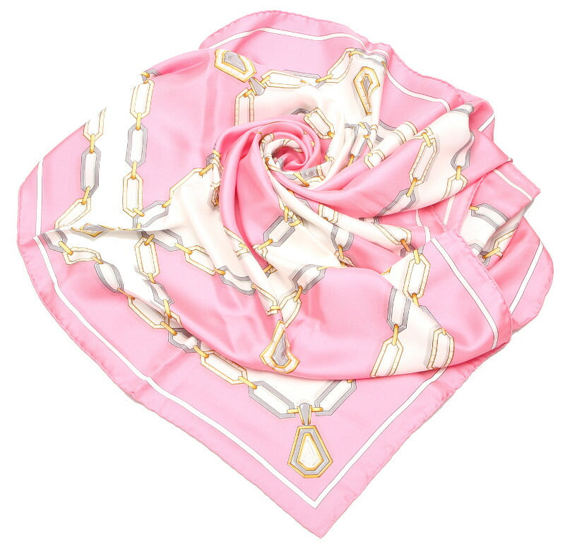 カルティエ チェーン モチーフ ピンク シルク スカーフ レディース CARTIER 中古