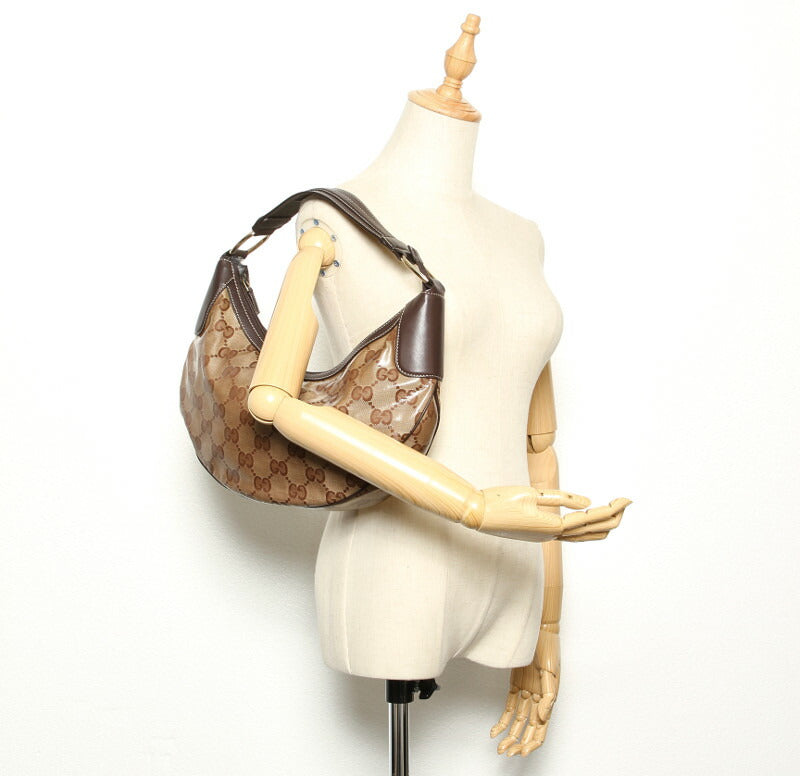グッチ GGクリスタル 257297 ブラウン 茶 PVC レザー ショルダーバッグ レディース GUCCI 中古