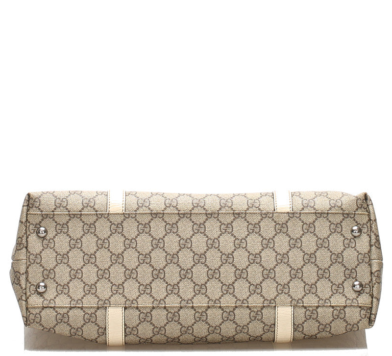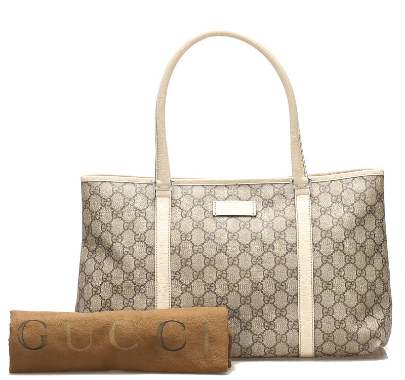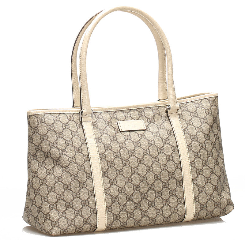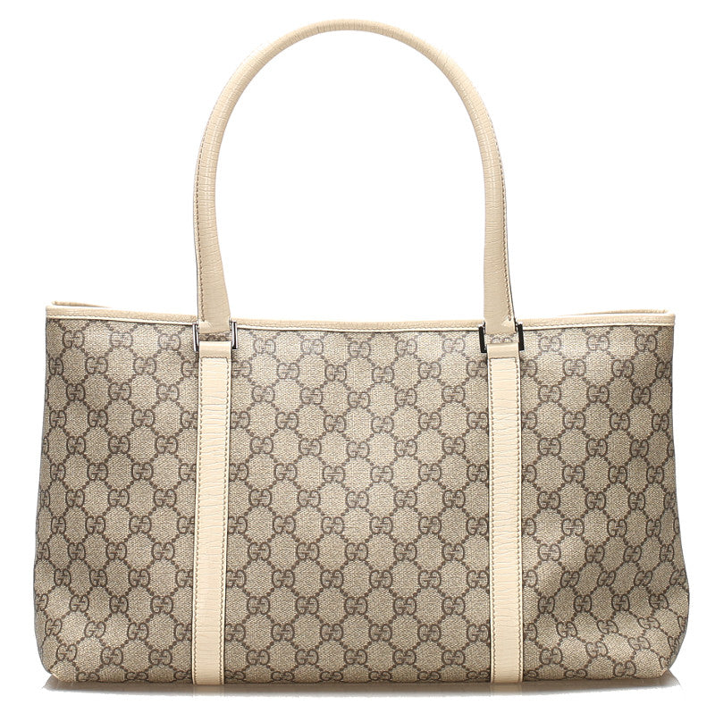 グッチ GG スプリーム 114595 ベージュ ホワイト PVC レザー トートバッグ レディース GUCCI 中古