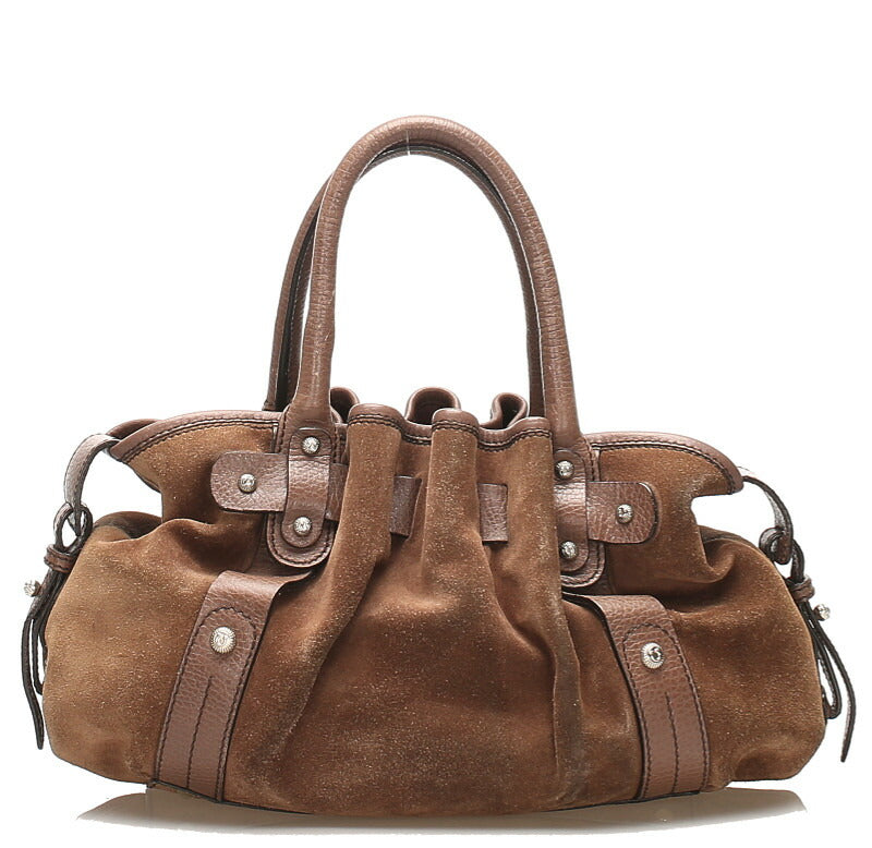 サルヴァトーレフェラガモ CD-21 A279 ベージュ ブラウン レザー スウェード ハンドバッグ レディース Salvatore Ferragamo 中古