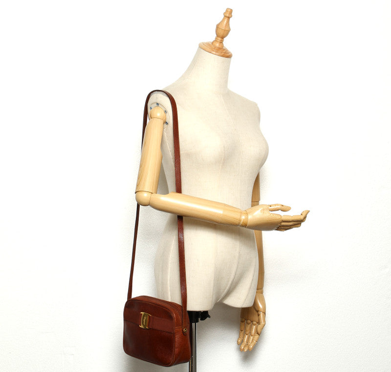 サルヴァトーレフェラガモ DE-21 3096 ブラウン 茶 レザー ショルダーバッグ Salvatore Ferragamo レディース 中古