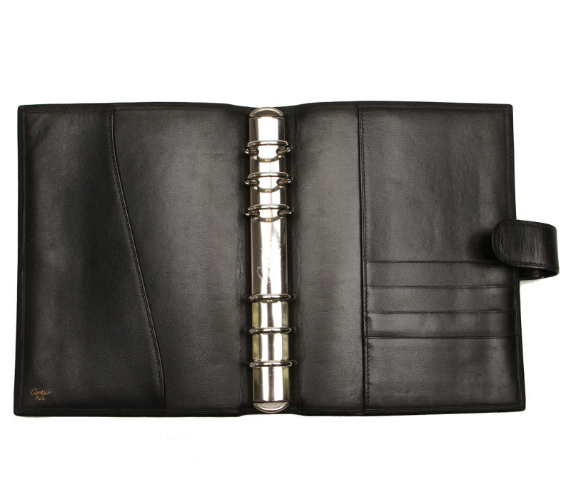 カルティエ ブラック 黒 レザー 手帳カバー ユニセックス CARTIER 中古