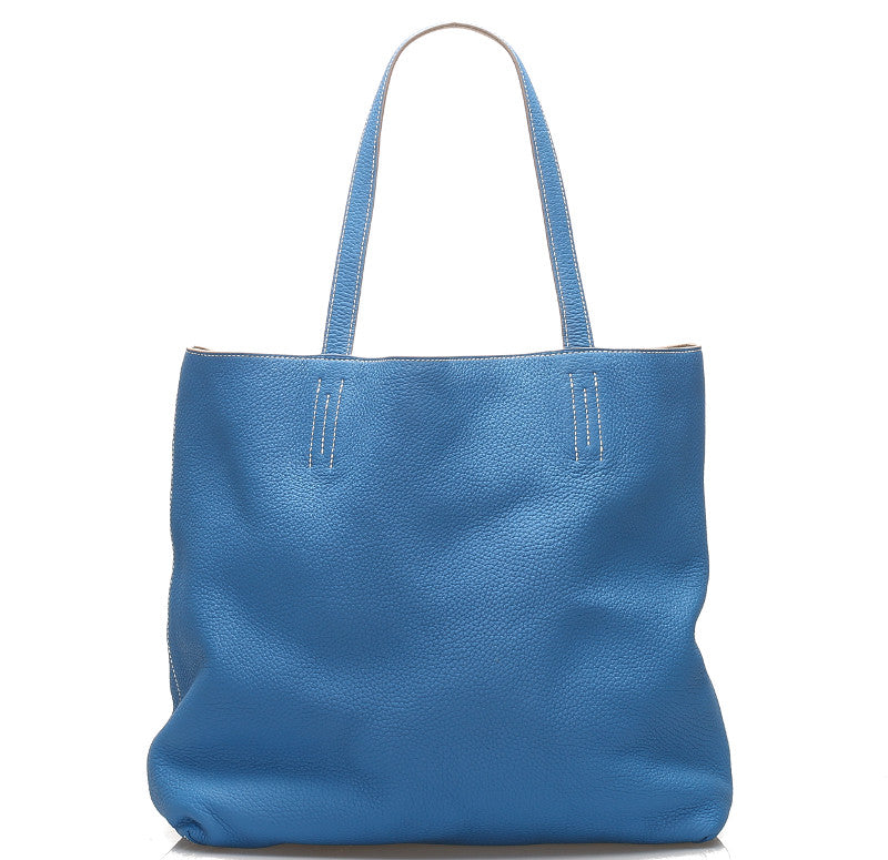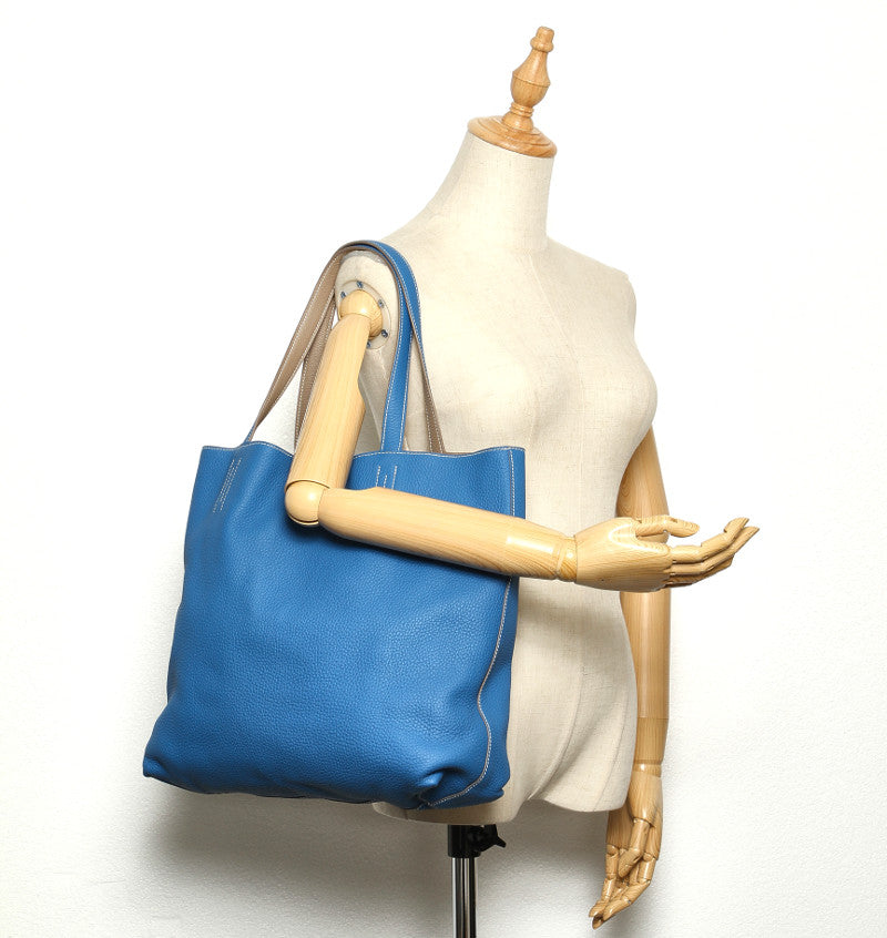 エルメス ドゥブルセンス45 ブルー 青 レザー トートバッグ ユニセックス HERMES □O(2011年制)刻印 中古