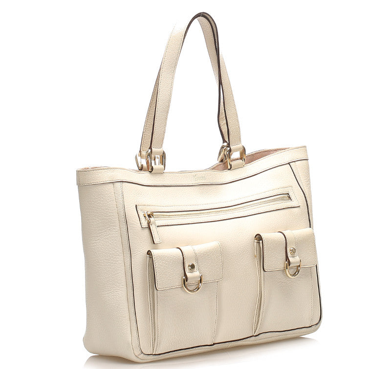 グッチ アビー 146247 ホワイト 白 レザー トートバッグ レディース GUCCI 中古