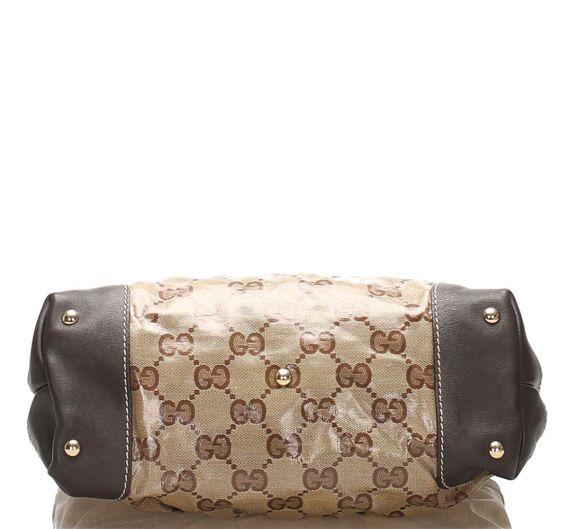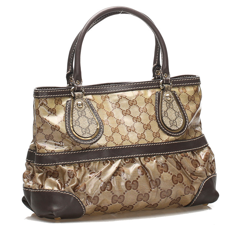 グッチ GGクリスタル 223964 ベージュ ブラウン コーティングキャンバス レザー ハンドバッグ レディース GUCCI 中古