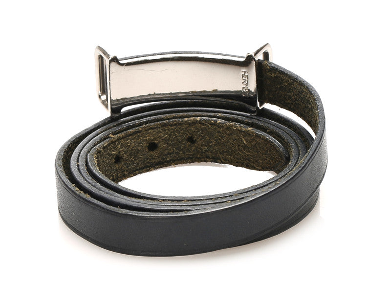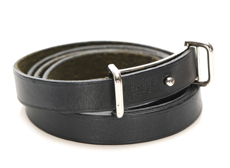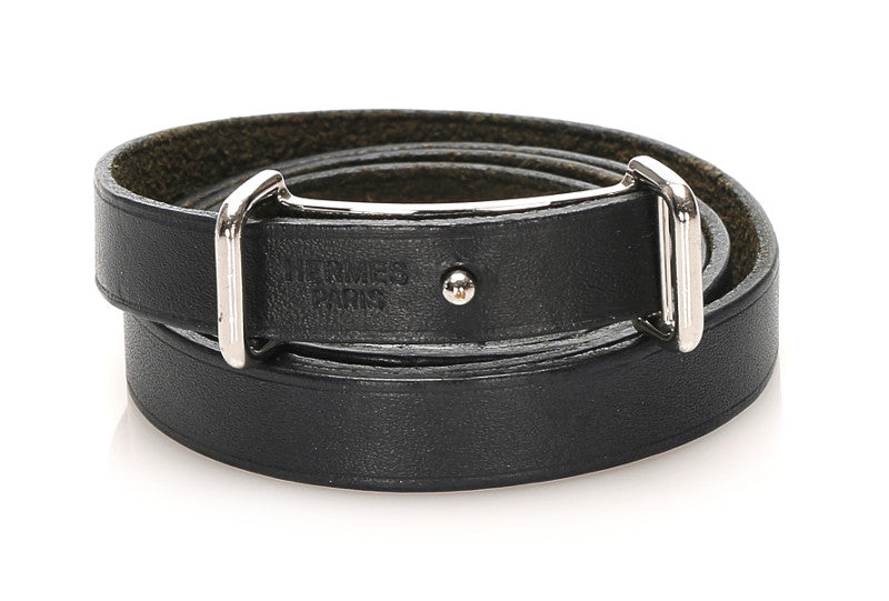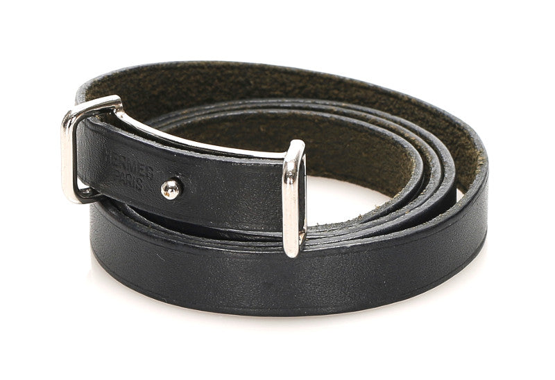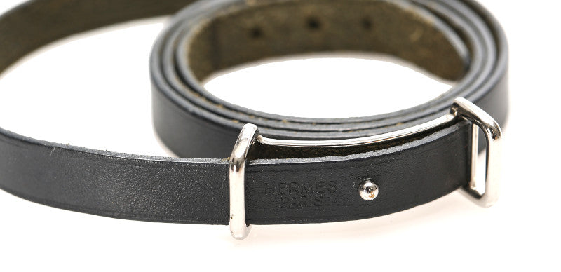 エルメス ブラック シルバー レザー メッキ ブレスレット ユニセックス HERMES 中古
