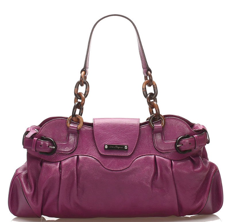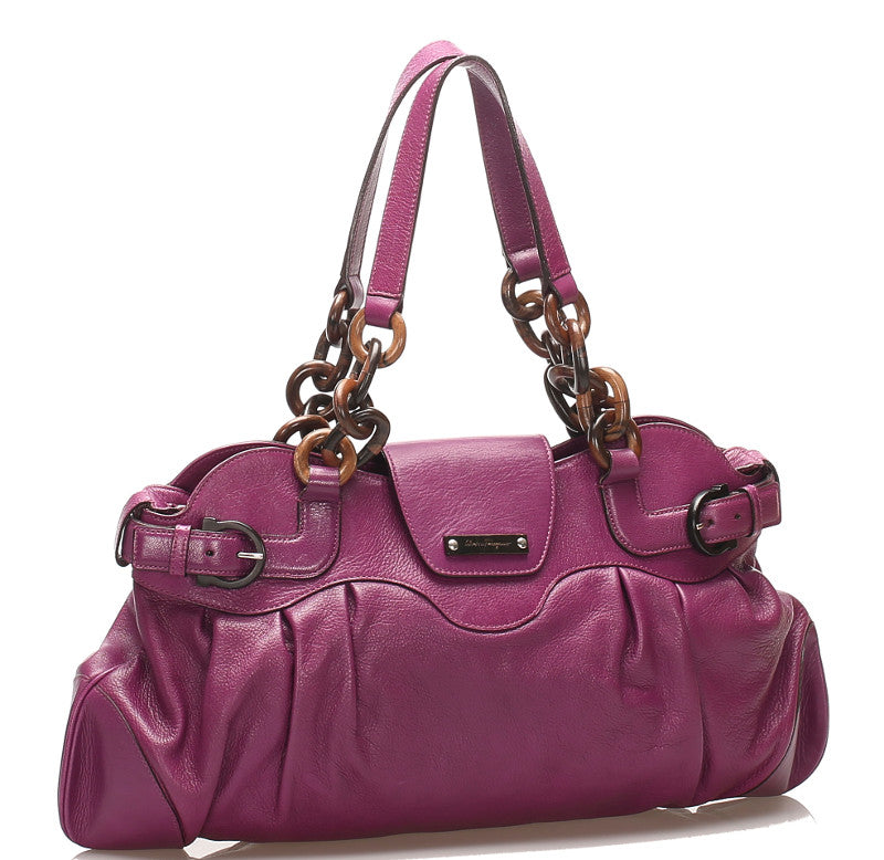 サルヴァトーレフェラガモ AU-21/6371 パープル 紫 レザー ハンドバッグ レディース Salvatore Ferragamo 中古