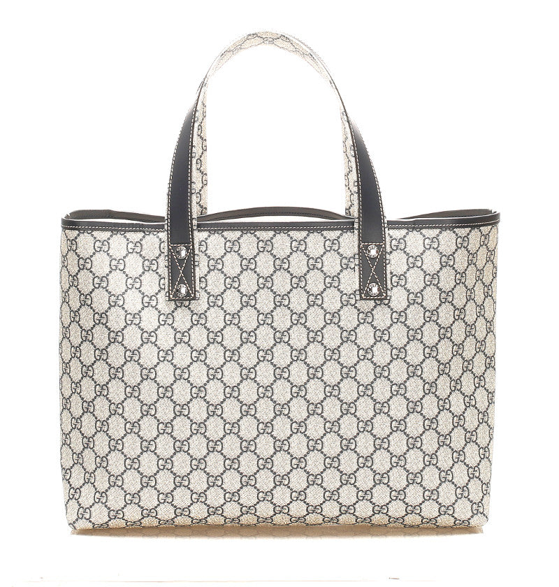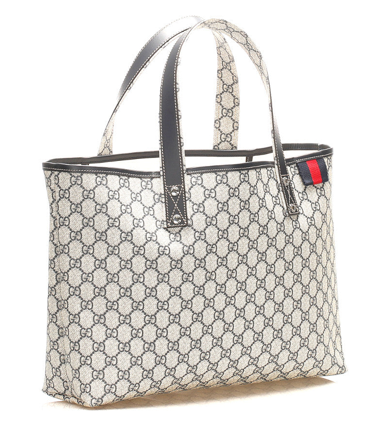グッチ GGスプリーム 211134 ネイビー グレー PVC レザー トートバッグ ユニセックス GUCCI 中古