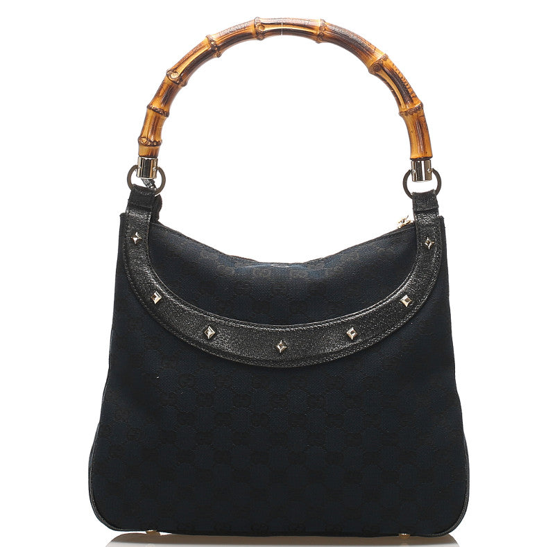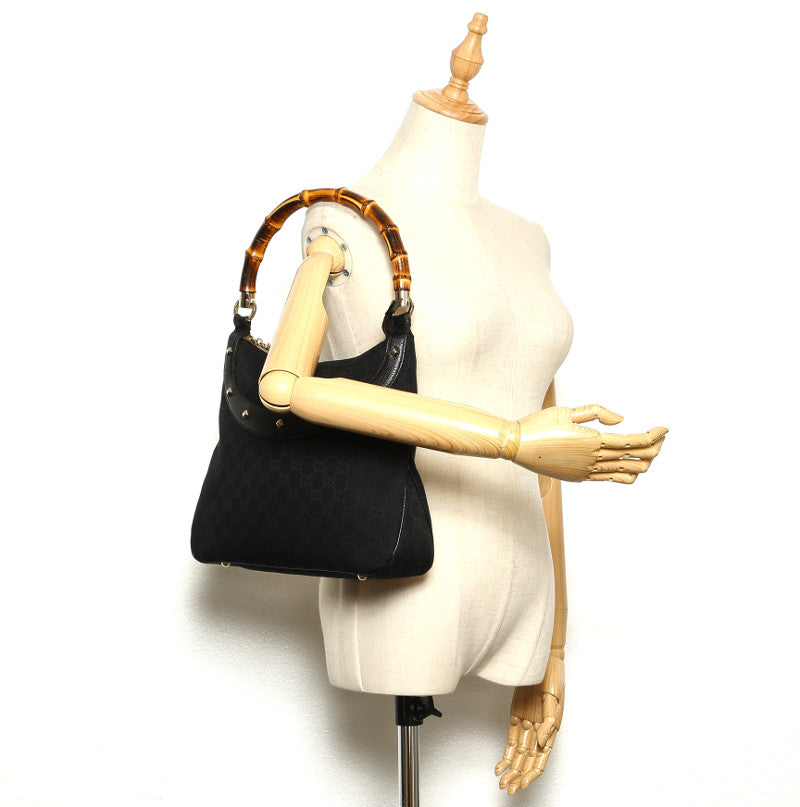 グッチ GGキャンバス バンブー 137379 ブラック 黒 キャンバス レザー ショルダーバッグ レディース GUCCI 中古