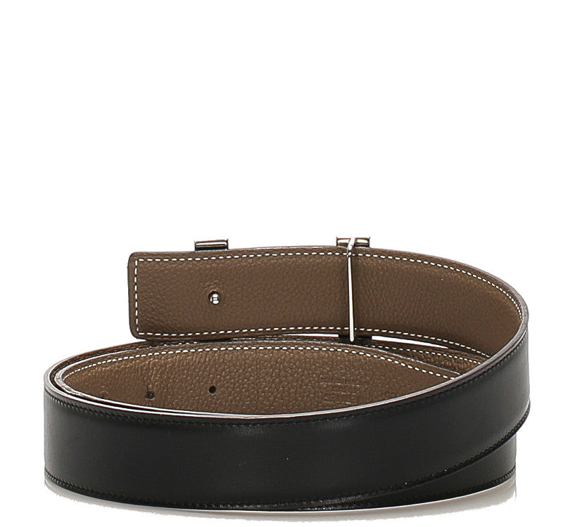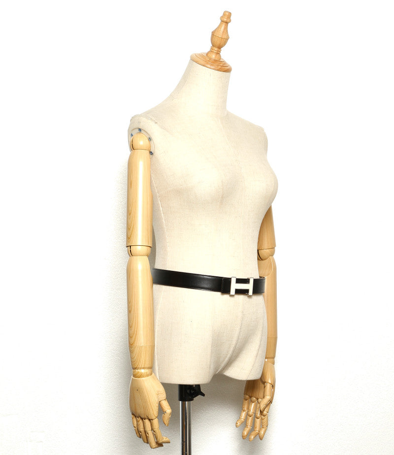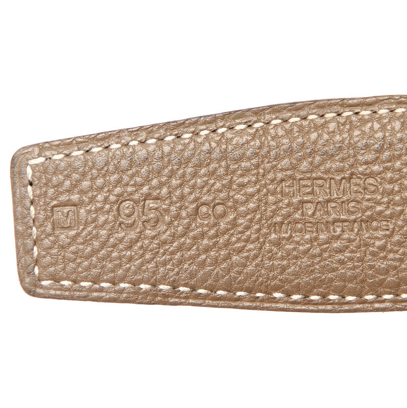 エルメス ベージュ ホワイト レザー ベルト メンズ HERMES □M印刻(2009年制)刻印 中古