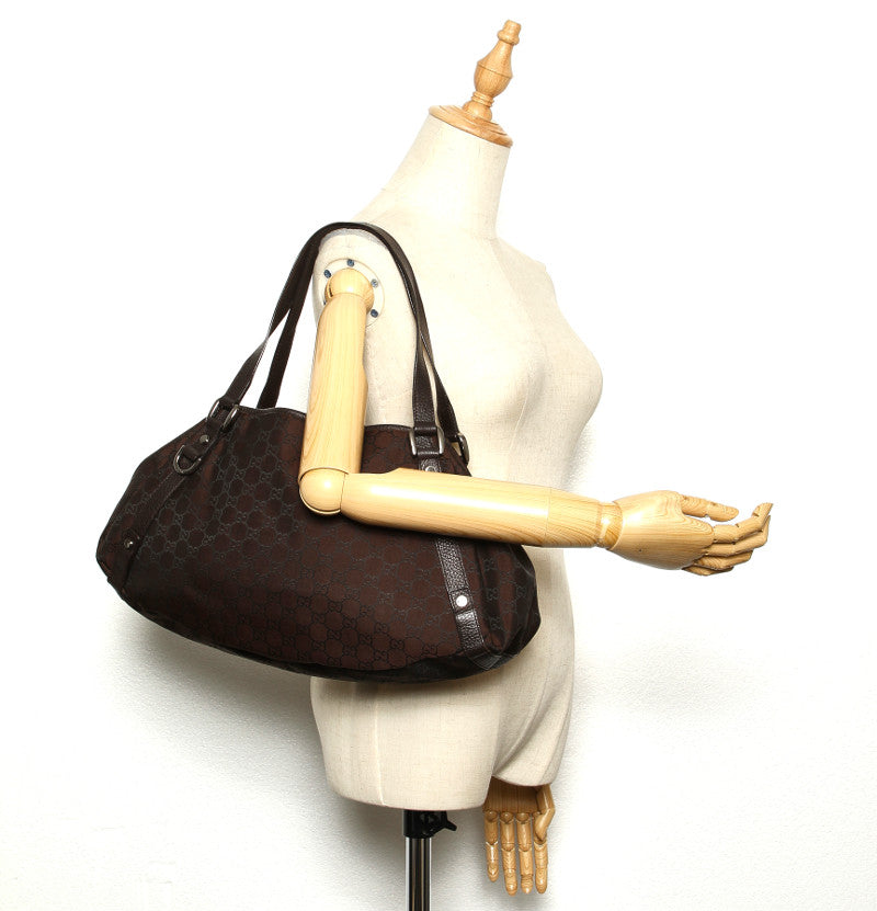 グッチ GGキャンバス ブラウン キャンバス レザー トートバッグ レディース GUCCI 中古