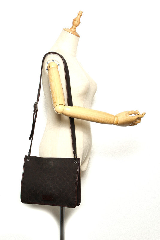 グッチ GGキャンバス 91762 ブラウン キャンバス レザー 肩掛け ショルダーバッグ レディース GUCCI 中古