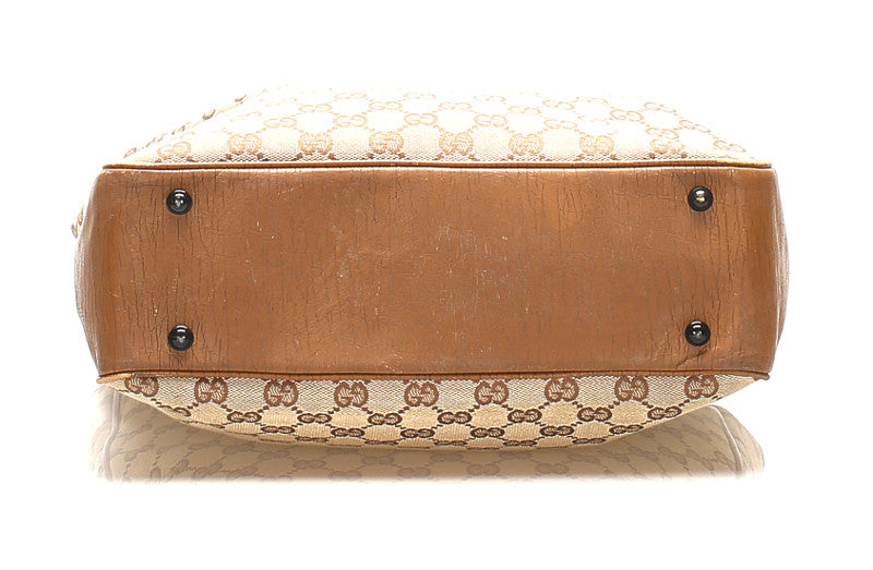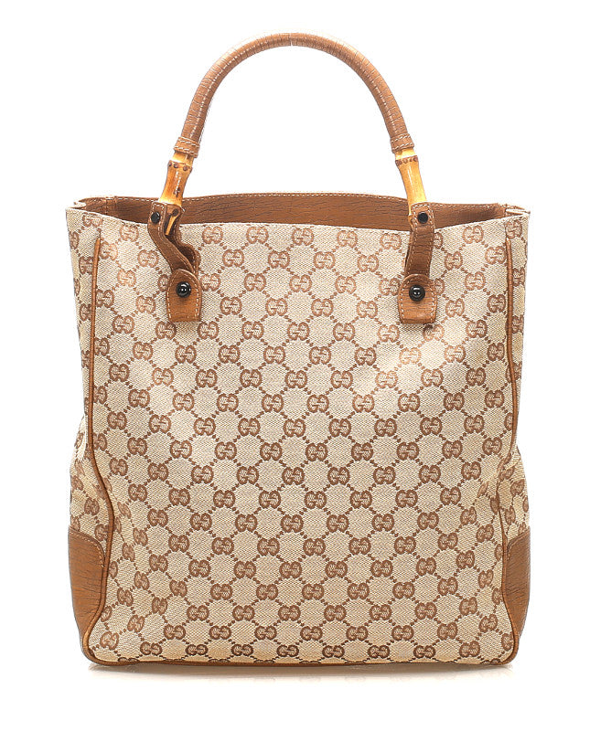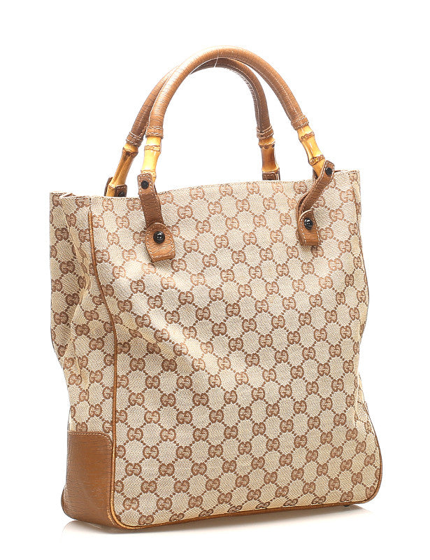 グッチ GGキャンバス ウッド 112530 ブラウン キャンバス レザー トートバッグ レディース GUCCI 中古