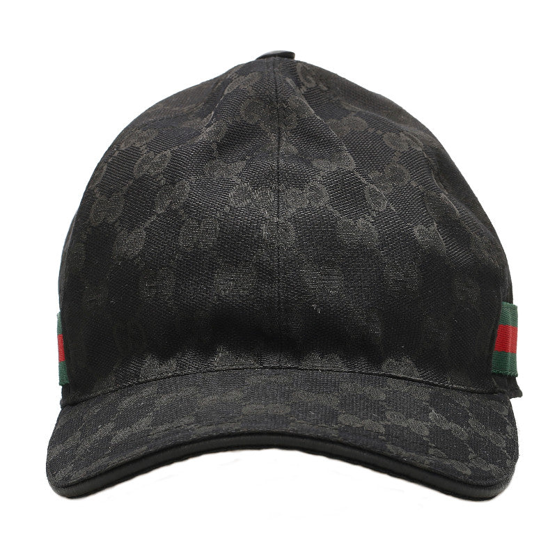 グッチ GGキャンバス シェリーライン 200035 ブラック 黒 キャンバス レザー キャップ ユニセックス GUCCI 中古