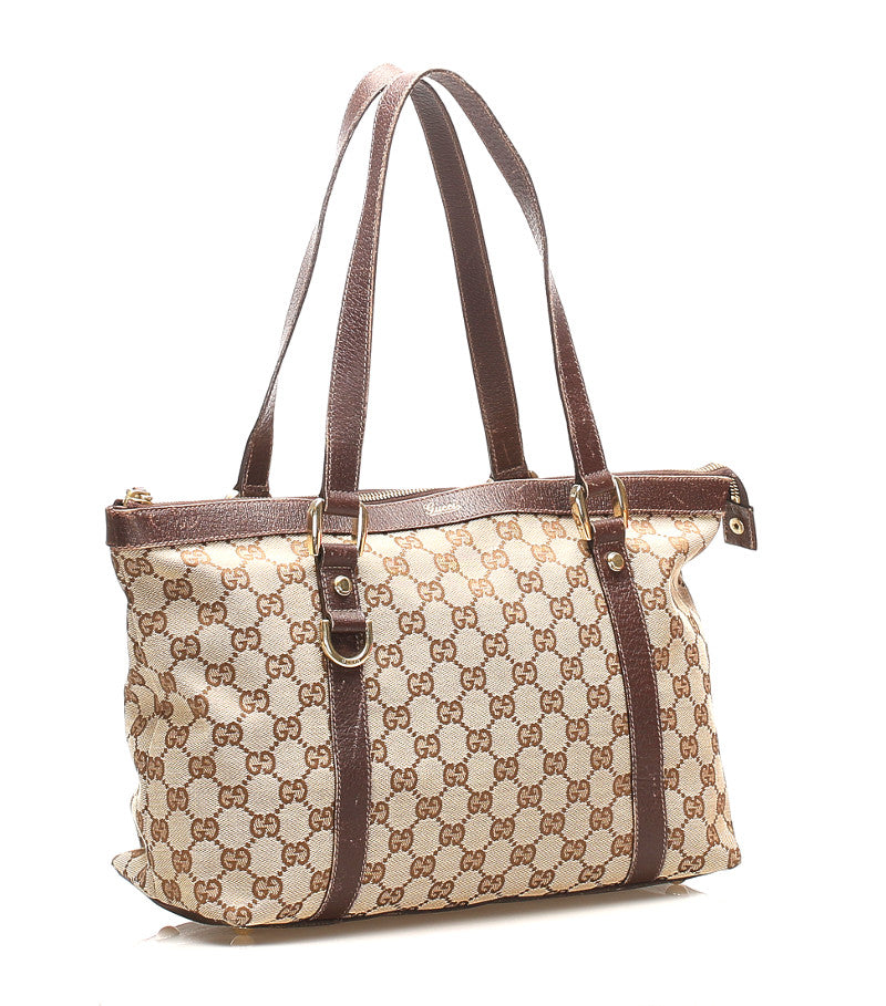 グッチ GGキャンバス ブラウン 茶 キャンバス レザー トートバッグ レディース GUCCI 中古