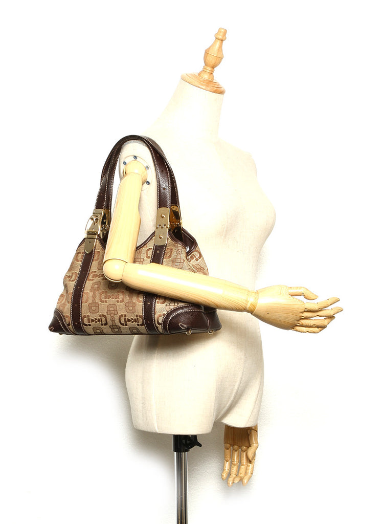 グッチ 145761 ブラウン キャンバス レザー トートバッグ レディース GUCCI 中古