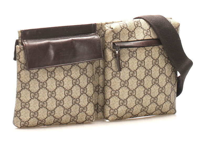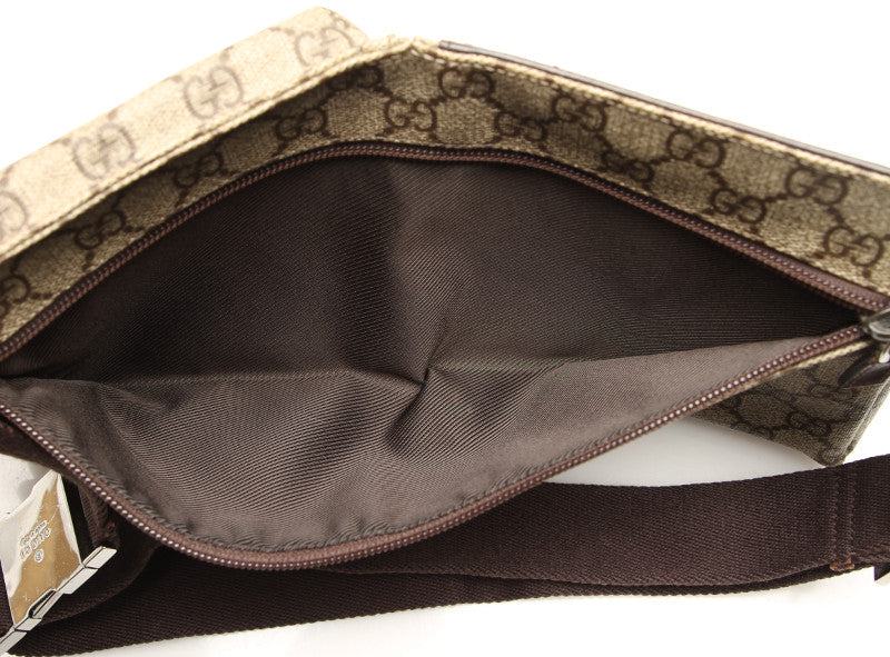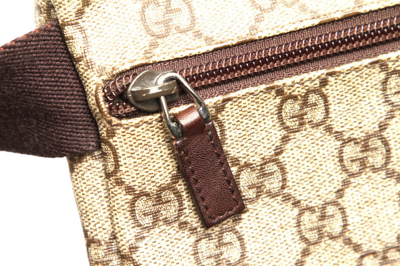 グッチ GGスプリーム 28566 ベージュ ブラウン PVC レザー ウエストバッグ ユニセックス GUCCI 中古