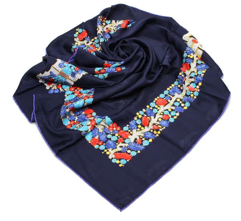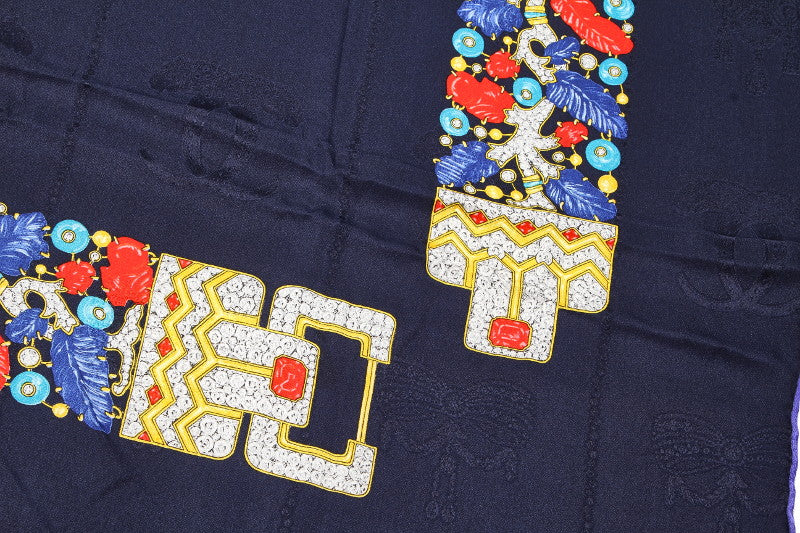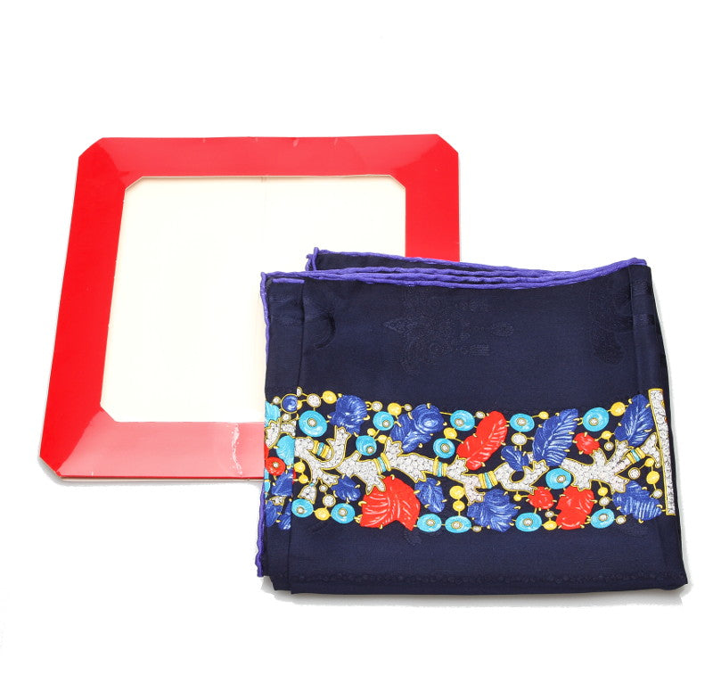 カルティエ ネイビー シルク スカーフ レディース CARTIER 中古