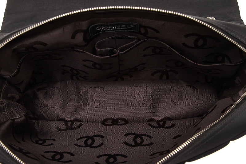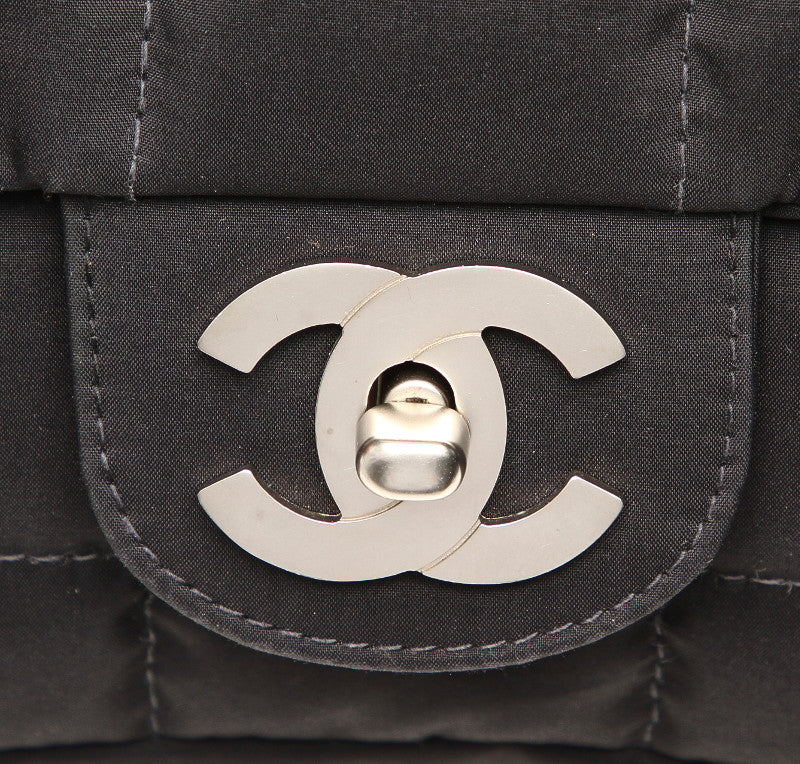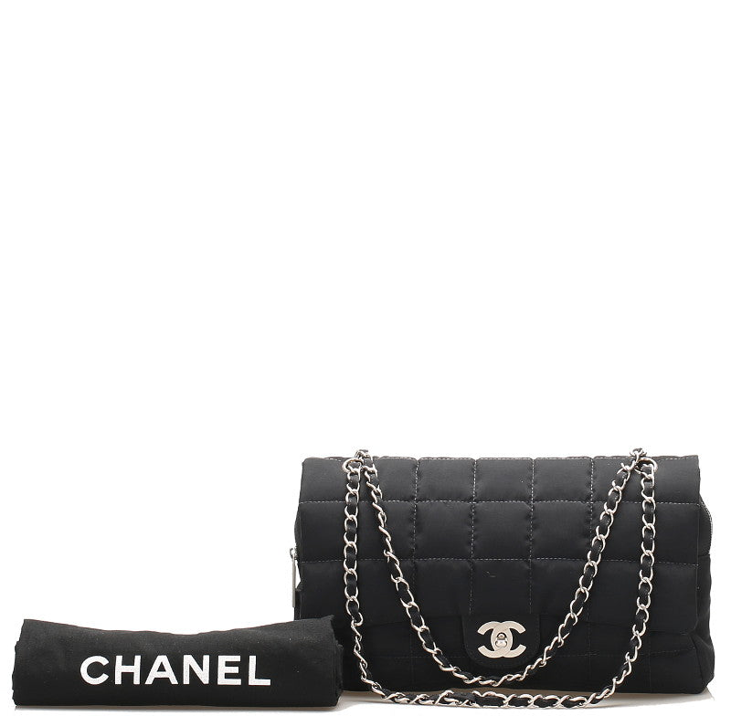 シャネル チョコバー ココマーク ブラック ナイロン チェーン ショルダーバッグ レディース CHANEL 中古