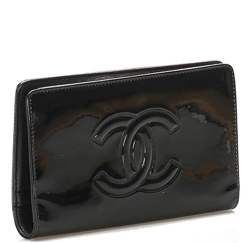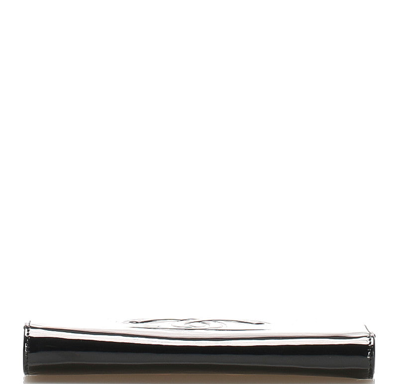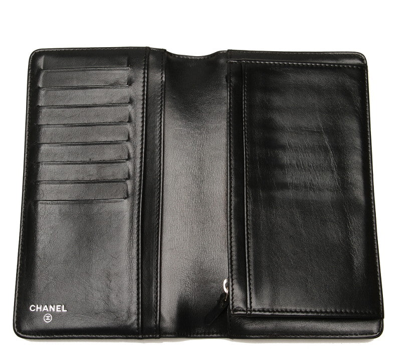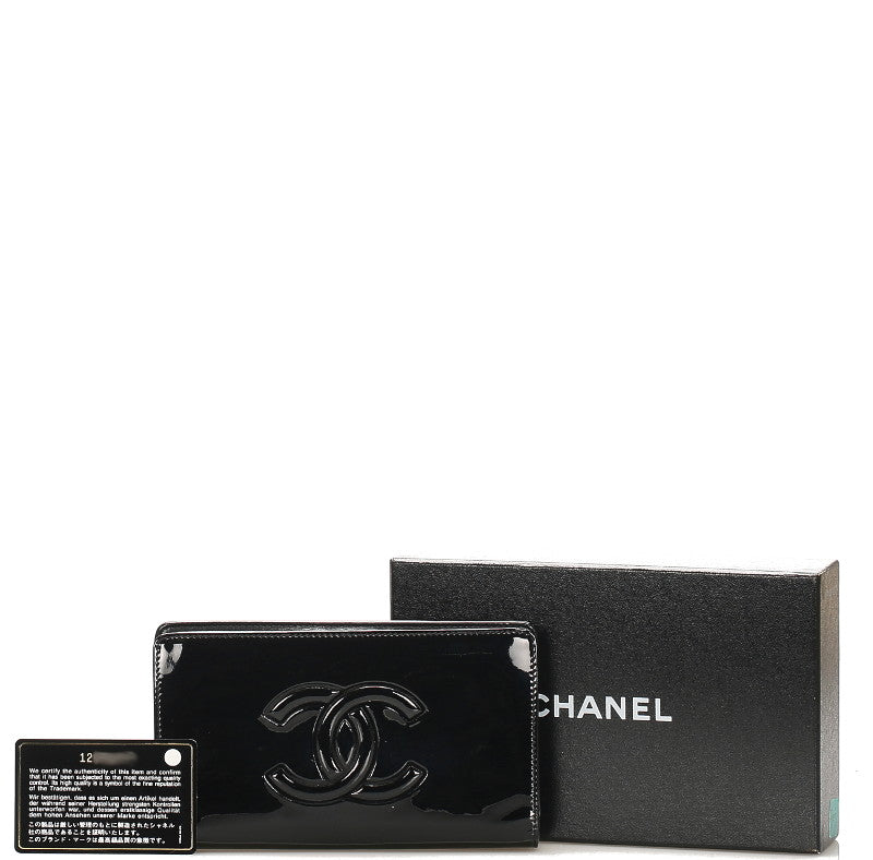 シャネル クルーズライン カメリア ブラック エナメル レザー 長財布 レディース CHANEL 中古