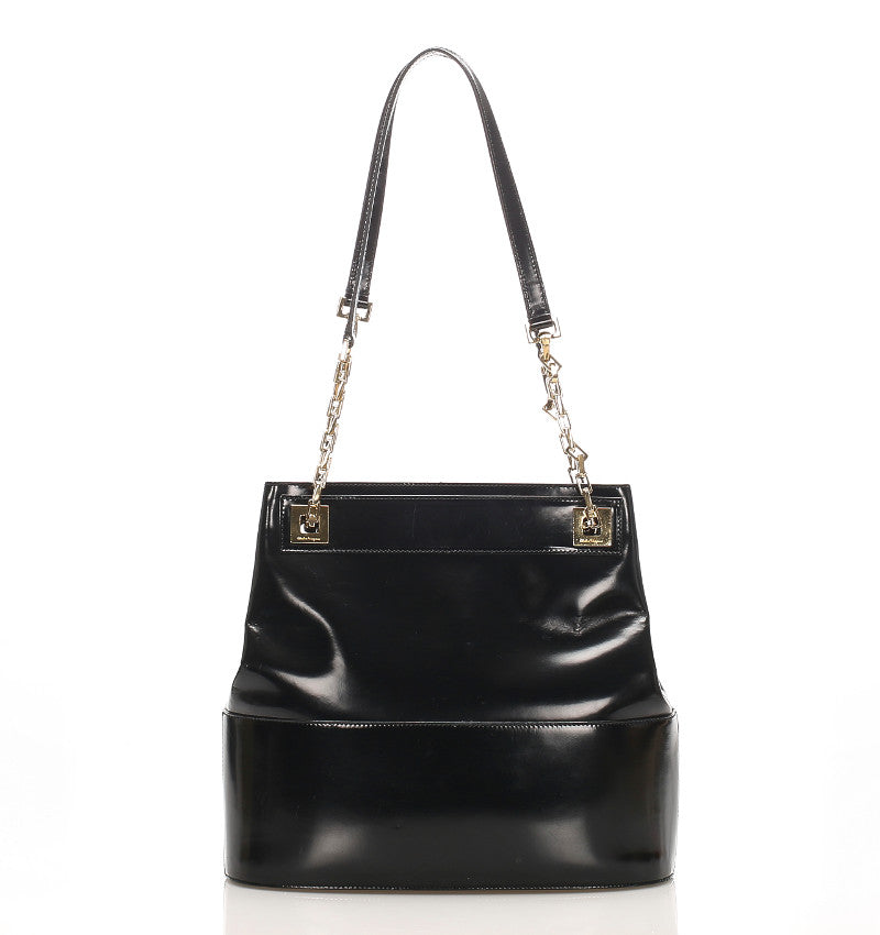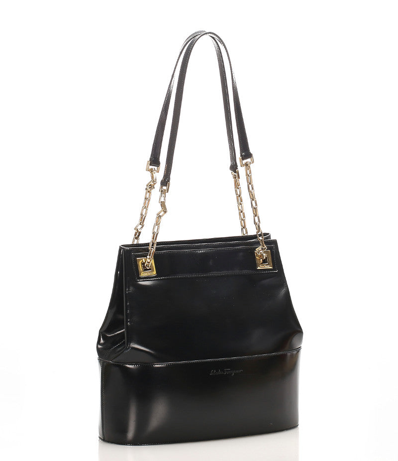 サルヴァトーレフェラガモ AU-21-1891 ブラック パテントレザー チェーン ショルダーバッグ レディース Salvatore Ferragamo 中古