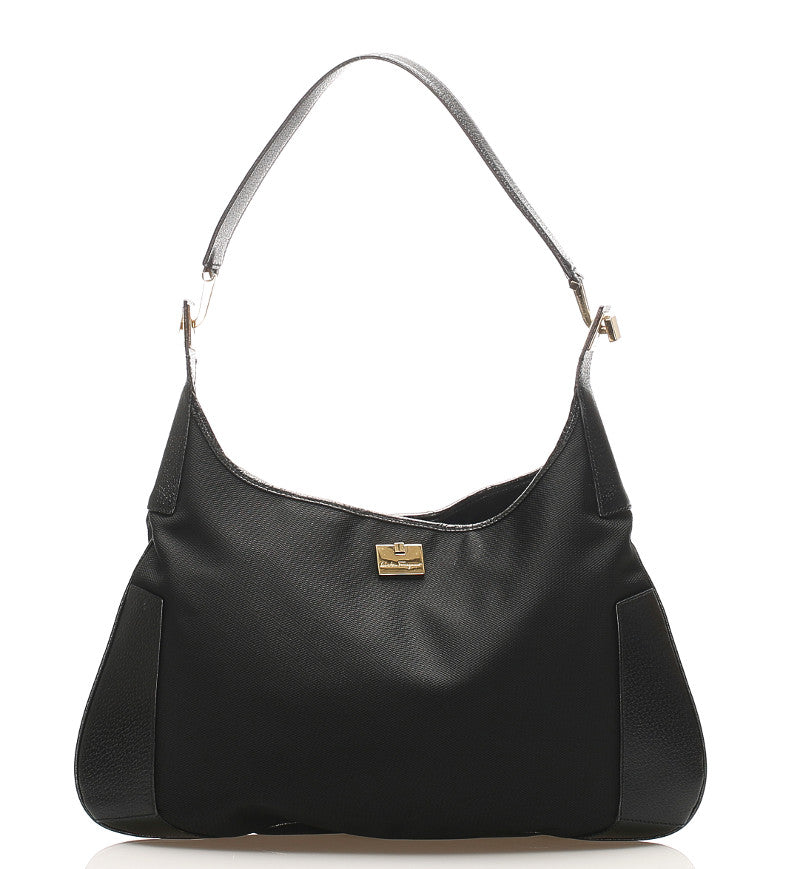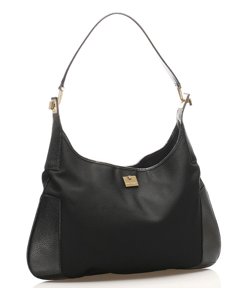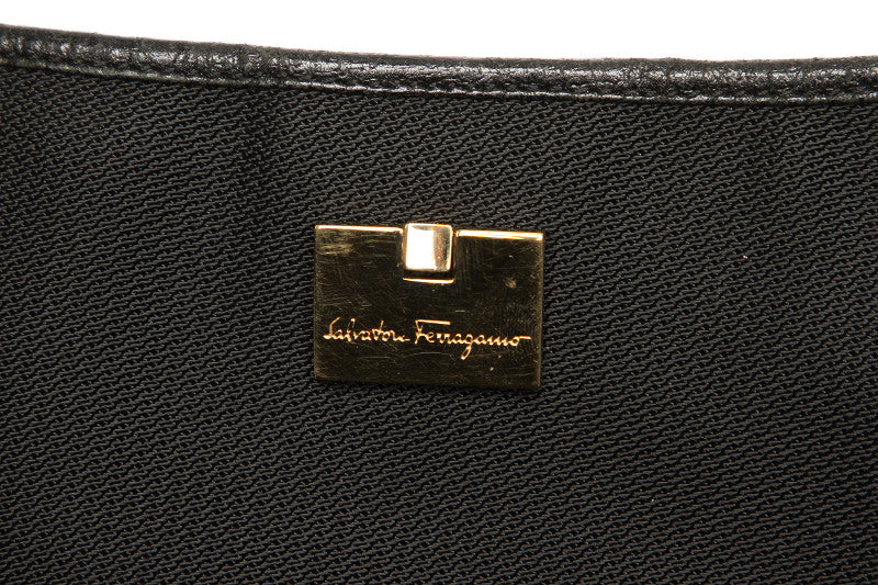 サルヴァトーレフェラガモ BK-21 1899 ブラック キャンバス レザー 肩掛け ショルダーバッグ レディース Salvatore Ferragamo 中古