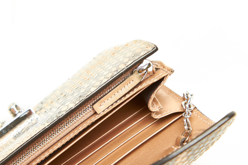 グッチ 331741 ベージュ レザー型押し 長財布 レディース GUCCI 中古