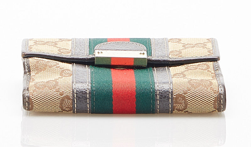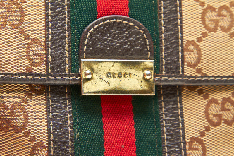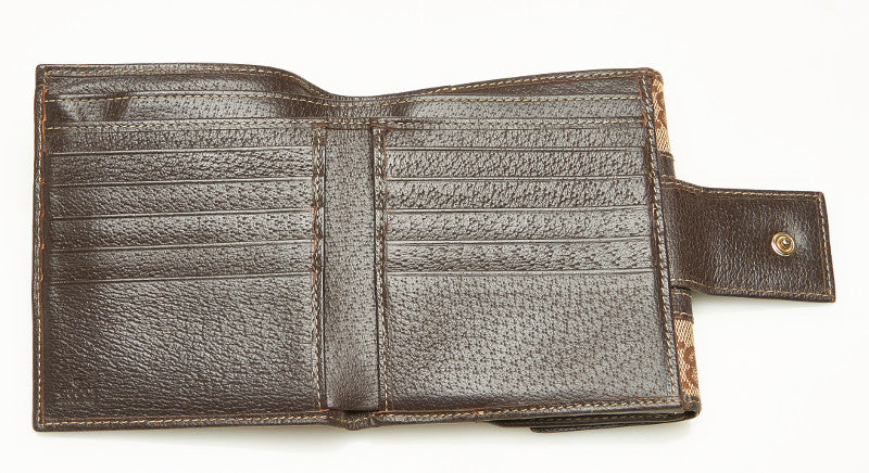 グッチ GGキャンバス シェリーライン 150672 ブラウン キャンバス 二つ折り財布 レディース GUCCI 中古