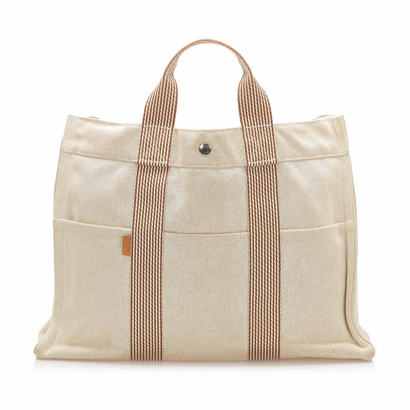 エルメス フールトゥMM ホワイト キャンバス トートバッグ レディース HERMES 中古