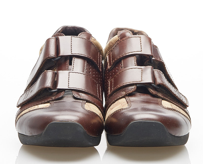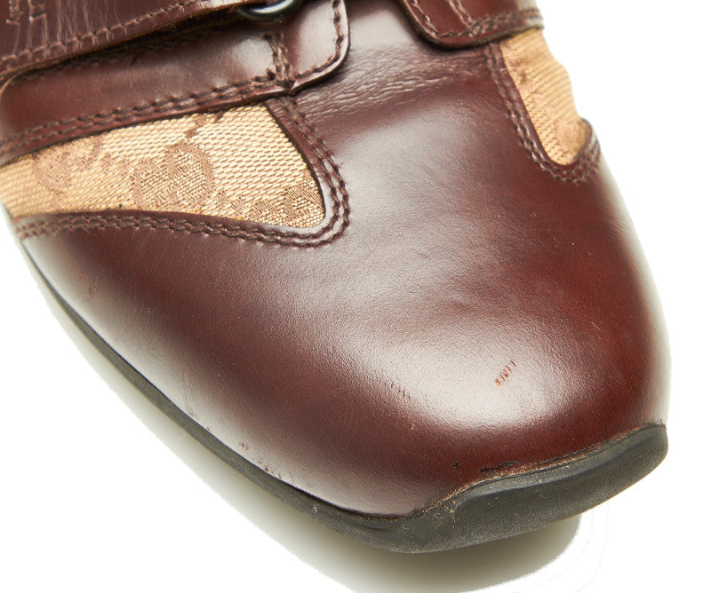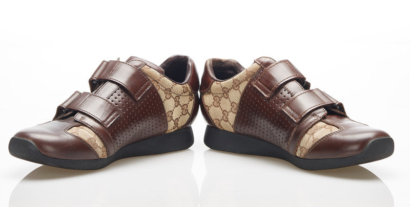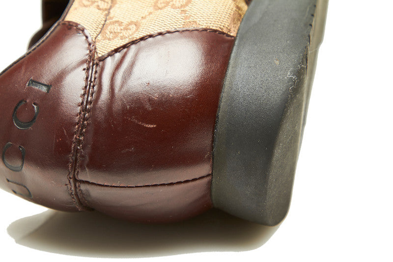 グッチ GGキャンバス ベルクロ 111 6047 ブラウン キャンバス レザー ドライビングスニーカー メンズ GUCCI 中古