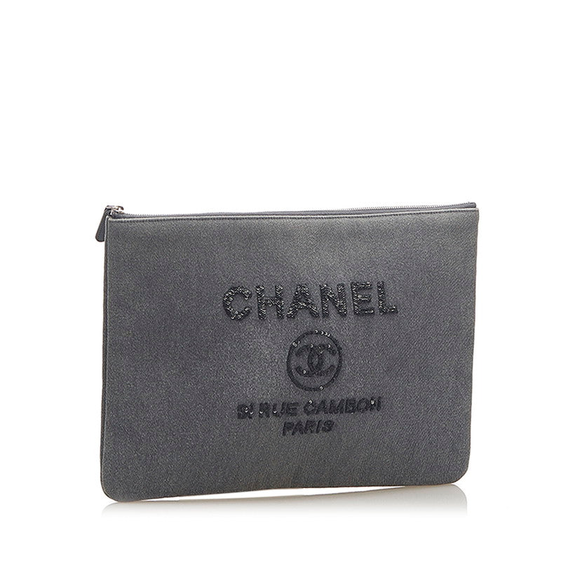 シャネル ドーヴィル グレー キャンバス クラッチバッグ レディース CHANEL 中古
