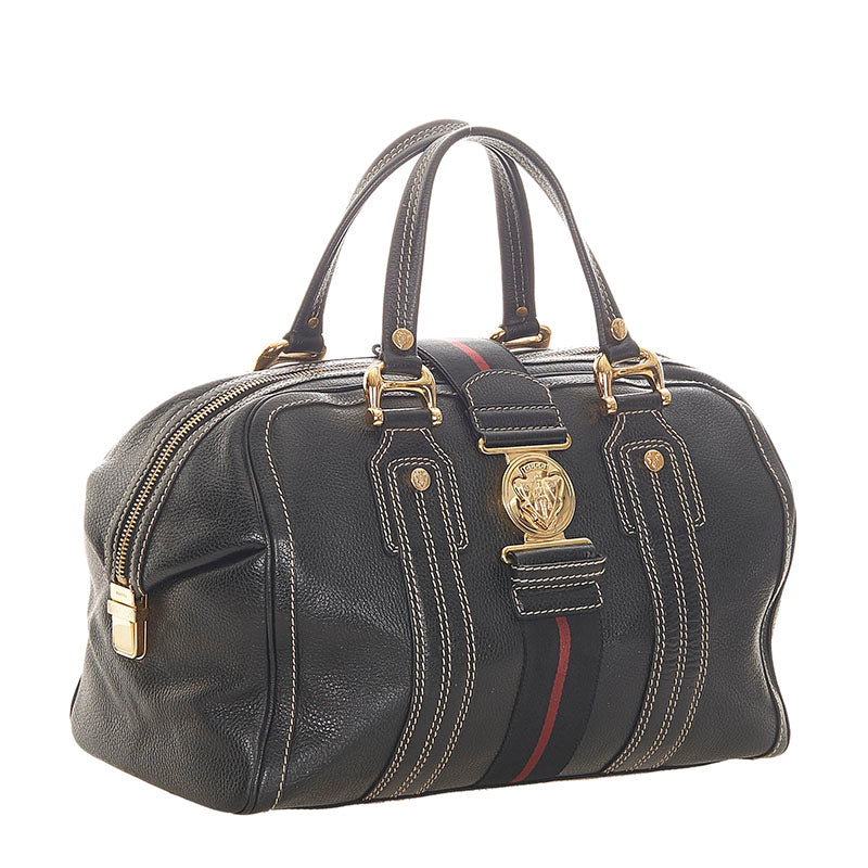 グッチ アヴィアトリックス ヒステリア シェリー 186232 ブラック レザー ボストンバッグ レディース GUCCI 【中古】