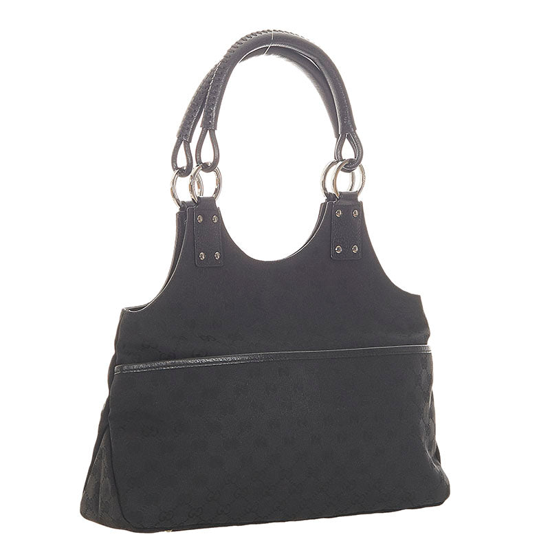 グッチ GGキャンバス 132260 ブラック キャンバス レザー ハンドバッグ レディース GUCCI 【中古】