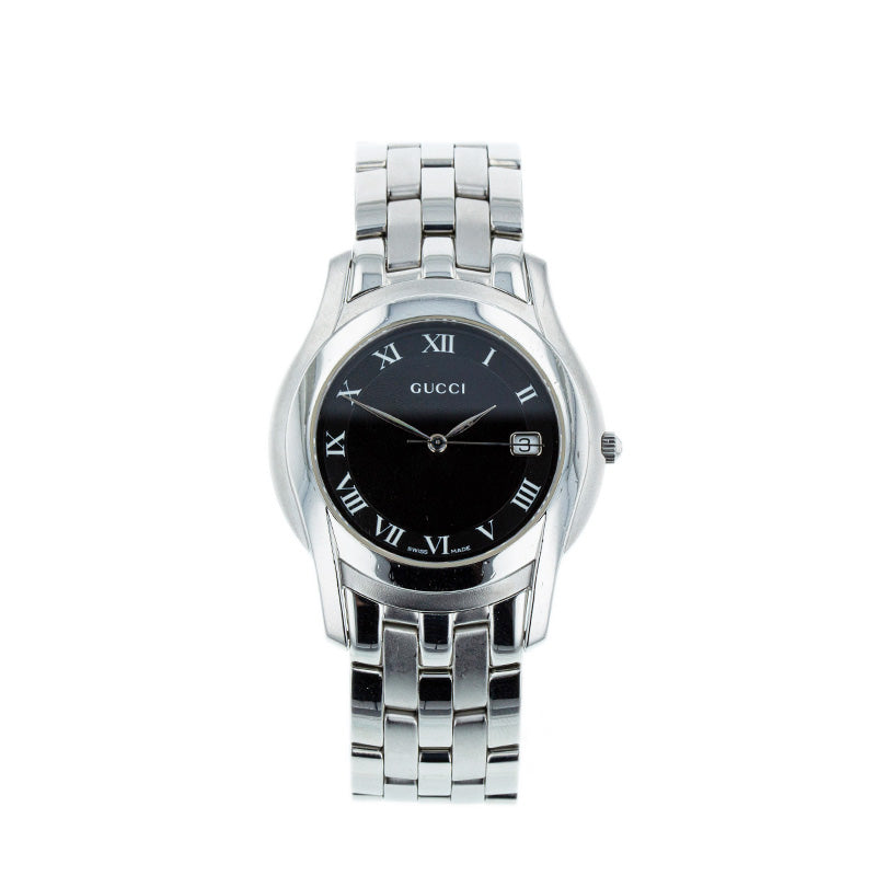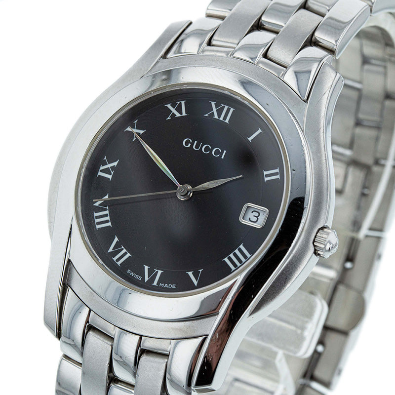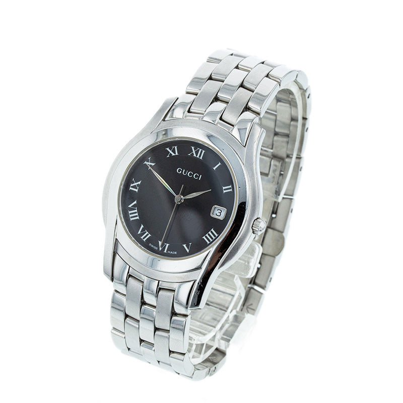 グッチ 5500M シルバー ステンレススチール 腕時計 メンズ GUCCI クオーツ ブラック文字盤 【中古】