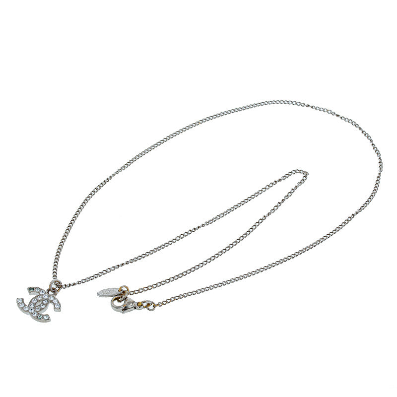 シャネル シルバー メタル ココマーク ラインストーン ネックレス レディース CHANEL 【中古】