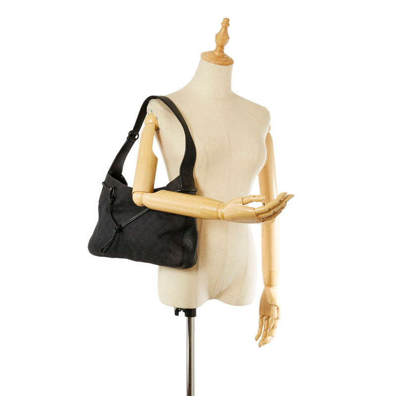 グッチ GGキャンバス 101975 ブラック グレー キャンバス レザー ワンショルダーバッグ レディース GUCCI 【中古】