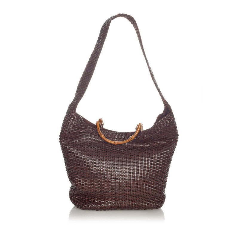 グッチ バンブー ブラウン レザー ハンドバッグ ショルダーバッグ 2WAY レディース GUCCI 【中古】