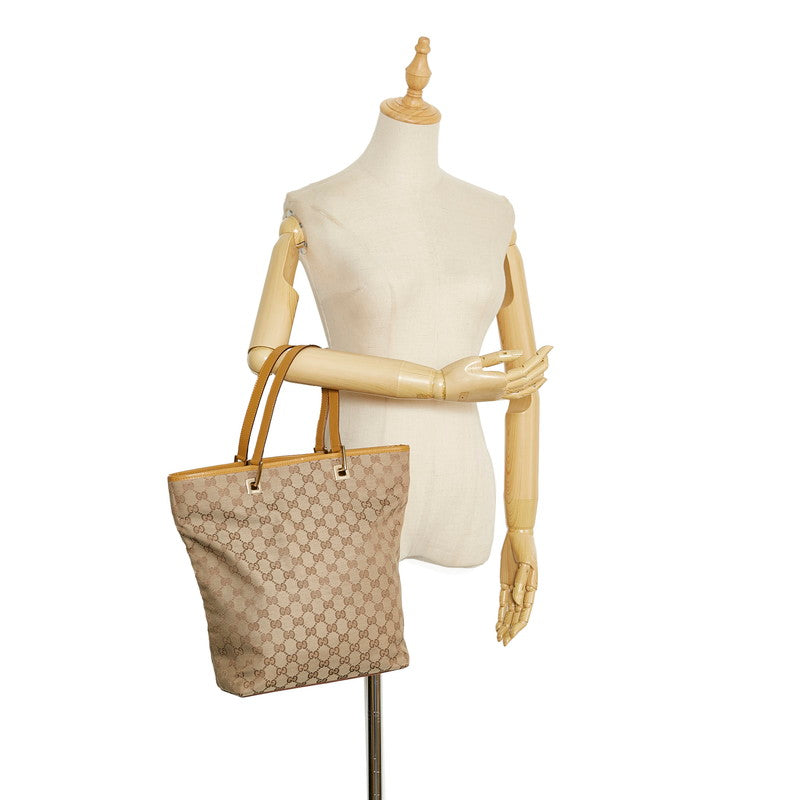 グッチ GGキャンバス ハンドバッグ トートバッグ 002.1098 ベージュ ブラウン キャンバス レザー レディース GUCCI 【中古】