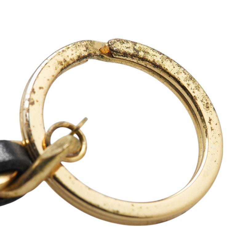 シャネル ココマーク ラウンド キーホルダー バッグチャーム ゴールド ブラック メッキ レザー レディース CHANEL 【中古】