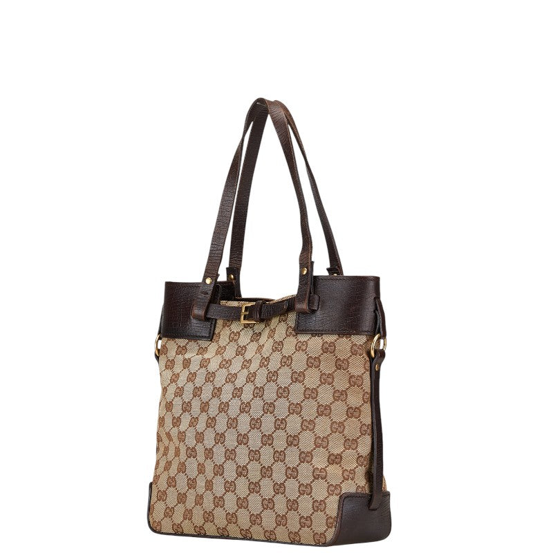 グッチ GGキャンバス トートバッグ 107757 ベージュ ブラウン キャンバス レザー レディース GUCCI 【中古】