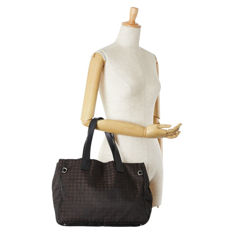 シャネル ニュートラベルライン トートMM トートバッグ ブラック ナイロン レザー レディース CHANEL 【中古】