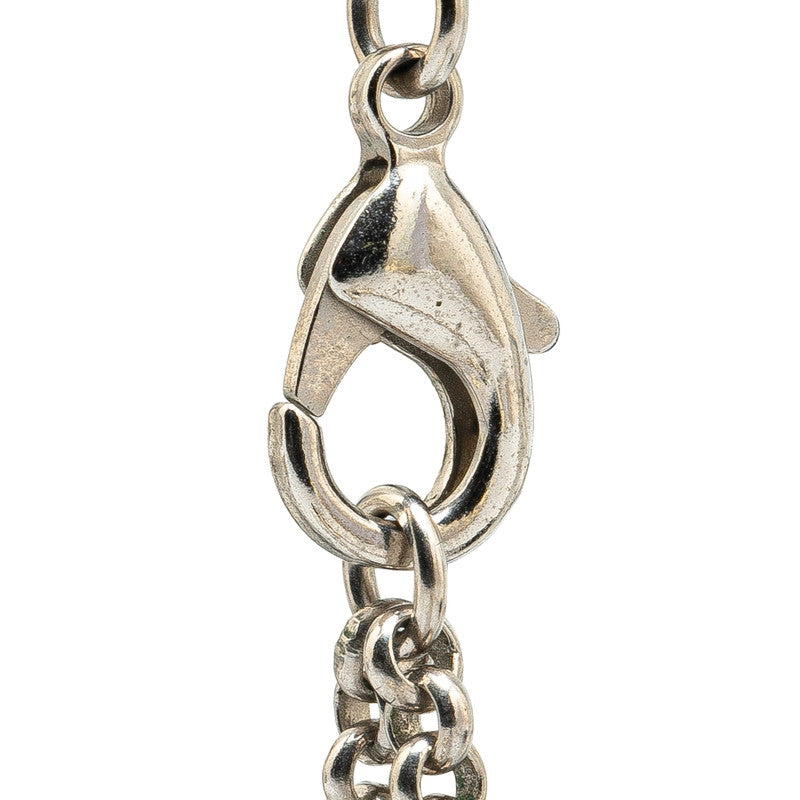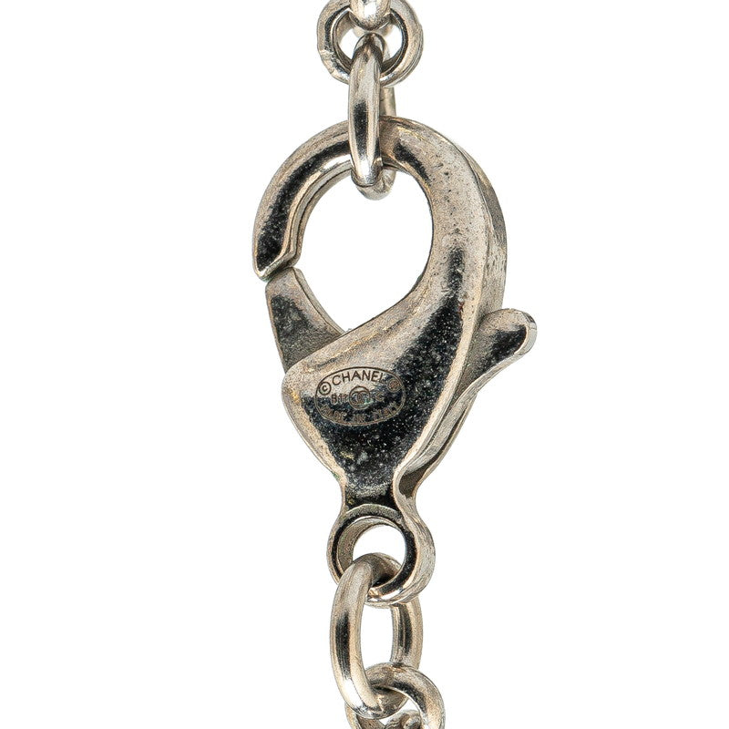 シャネル ココマーク リボン フェイクパール 2連 ネックレス シルバー ブラック メタル レディース CHANEL 【中古】