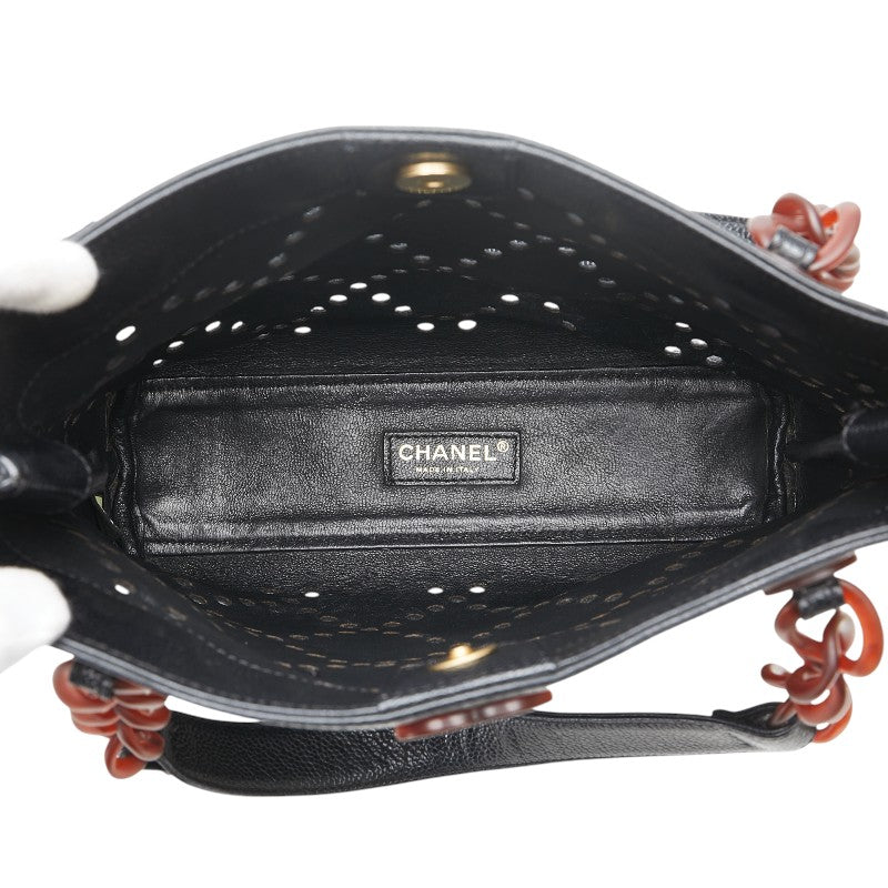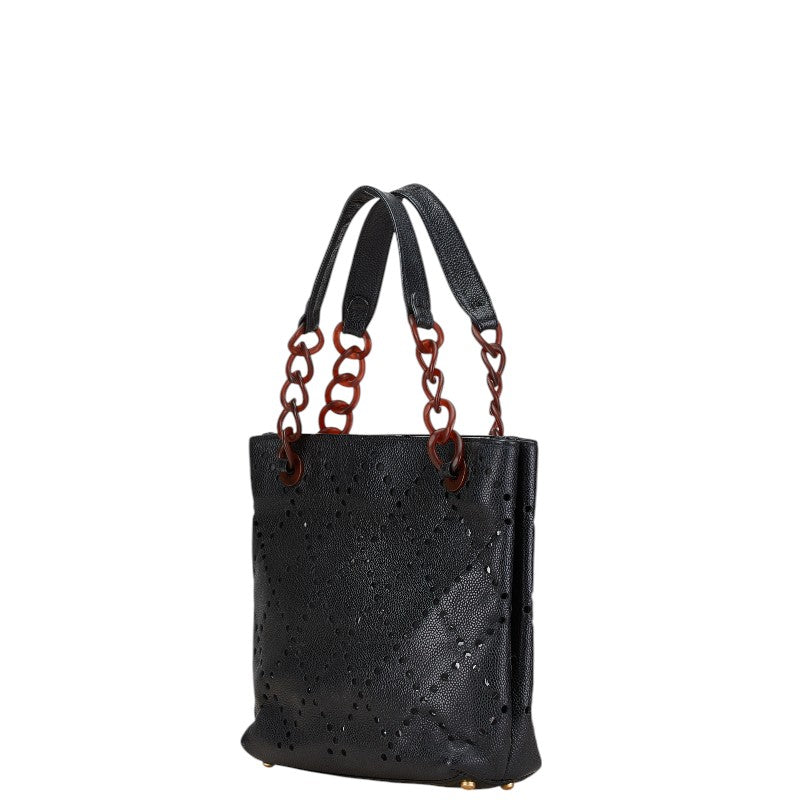 シャネル ココマーク パンチング チェーン ハンドバッグ ブラック キャビアスキン プラスチック レディース CHANEL 【中古】