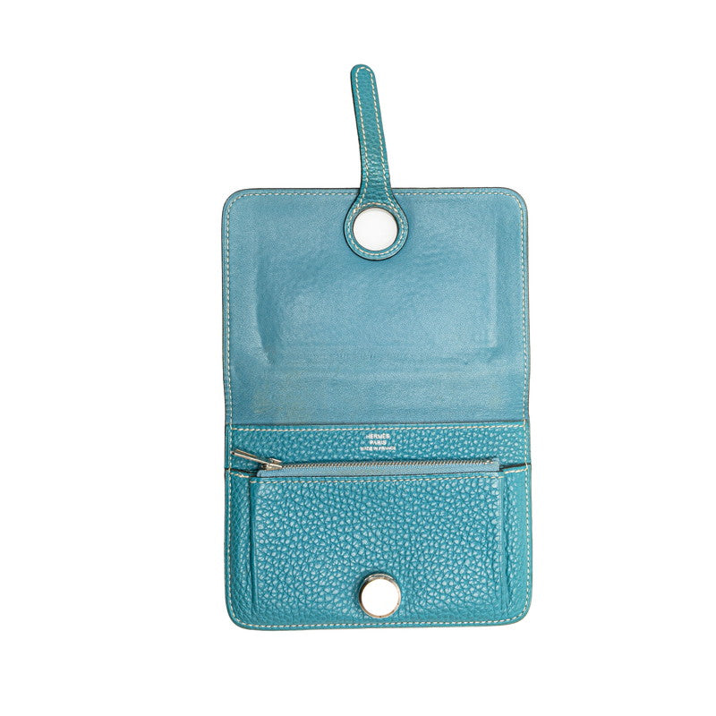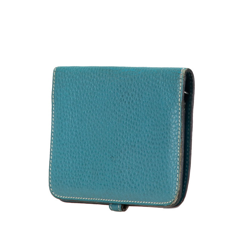エルメス ドゴン コンパクト 二つ折り財布 ブルー系 トゴ レディース HERMES 【中古】