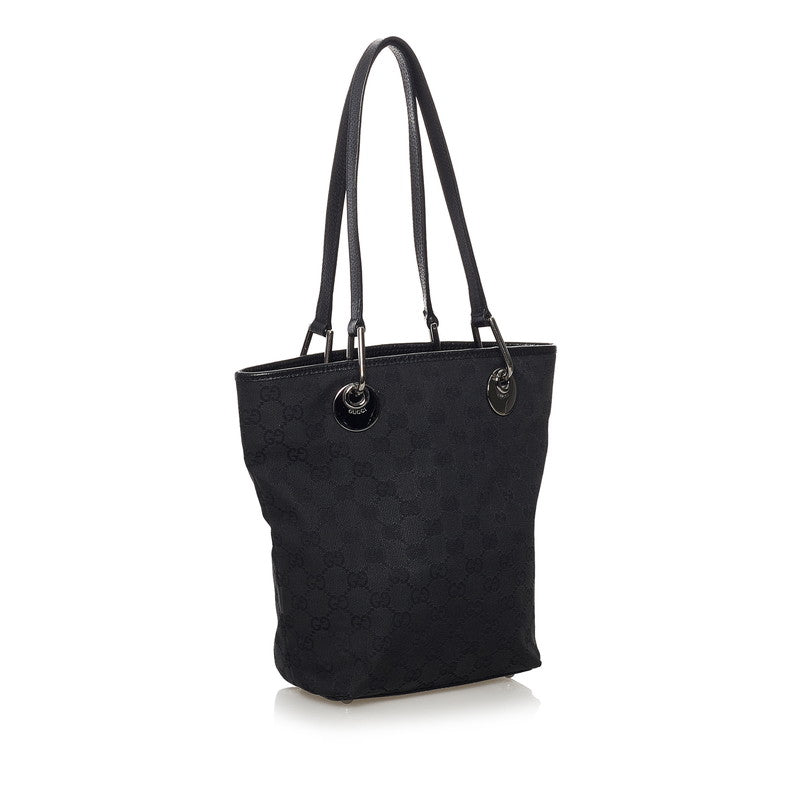 グッチ GGキャンバス トートバッグ 120840 ブラック キャンバス レザー レディース GUCCI 【中古】