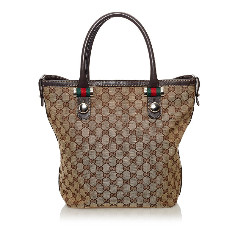 グッチ GGキャンバス シェリー トートバッグ ブラウン キャンバス レザー レディース GUCCI 【中古】
