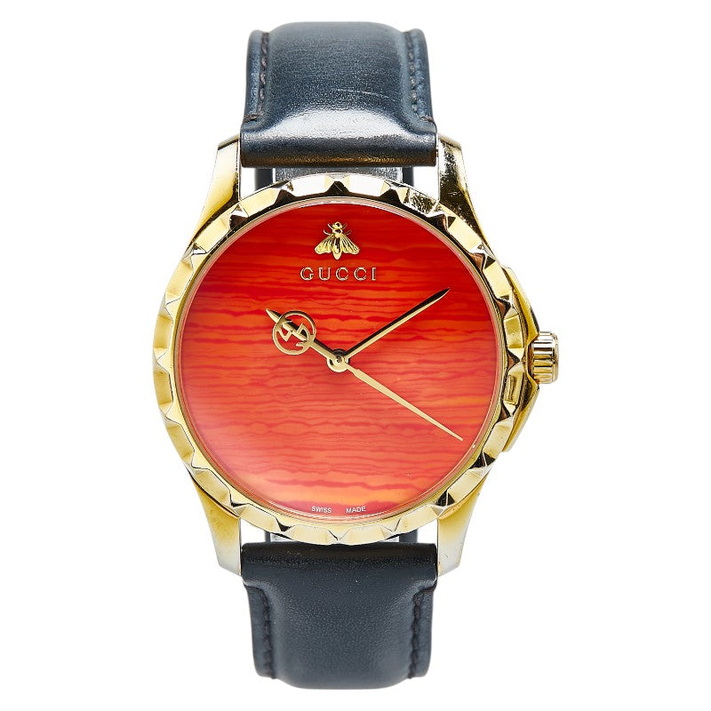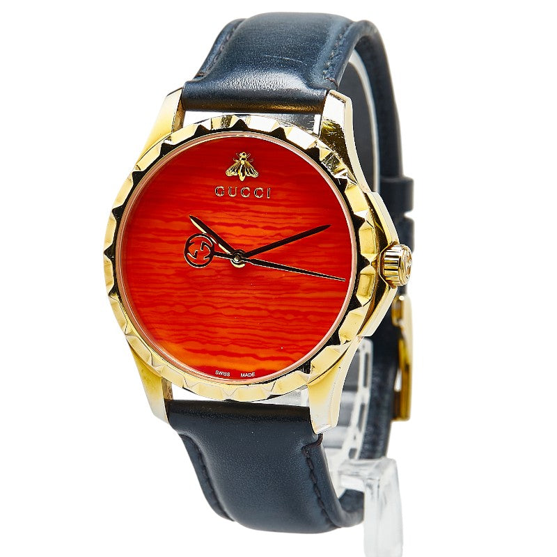 グッチ Gタイムレス 腕時計 126.4 クオーツ レッド文字盤 ステンレススチール レザー レディース GUCCI 【中古】