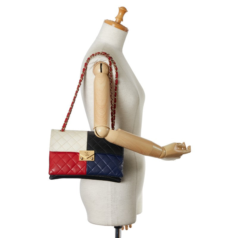 シャネル ココマーク チェーン ショルダーバッグ ブラック レッド マルチカラー ラムスキン レディース CHANEL 【中古】